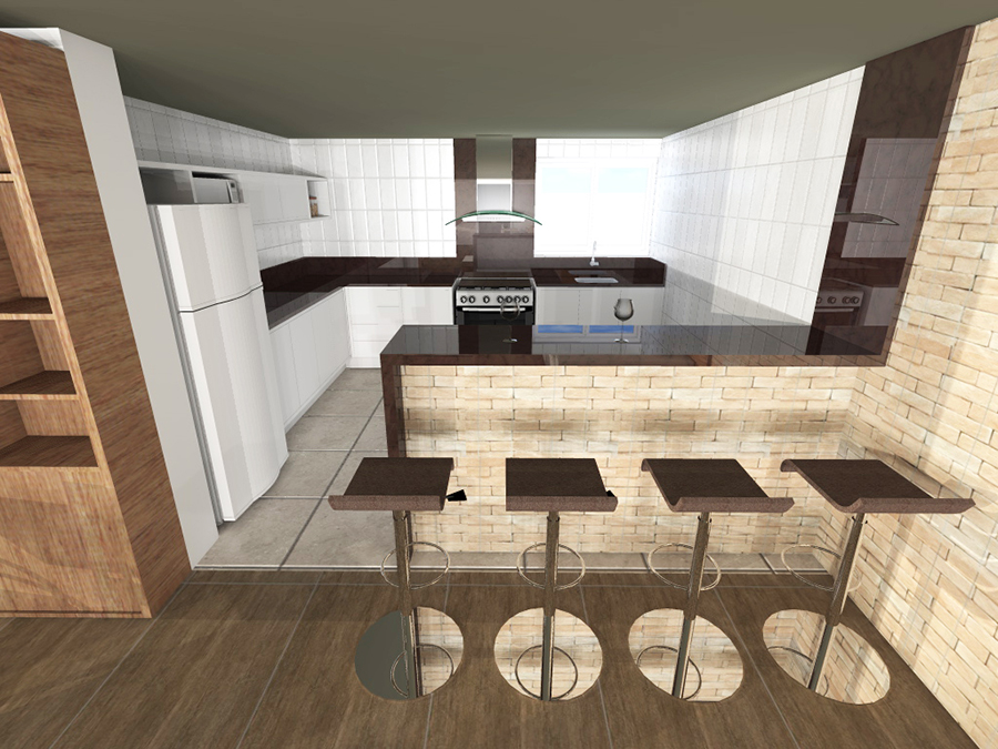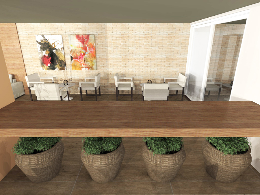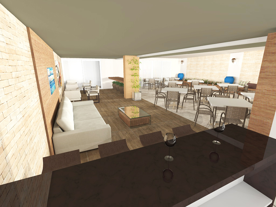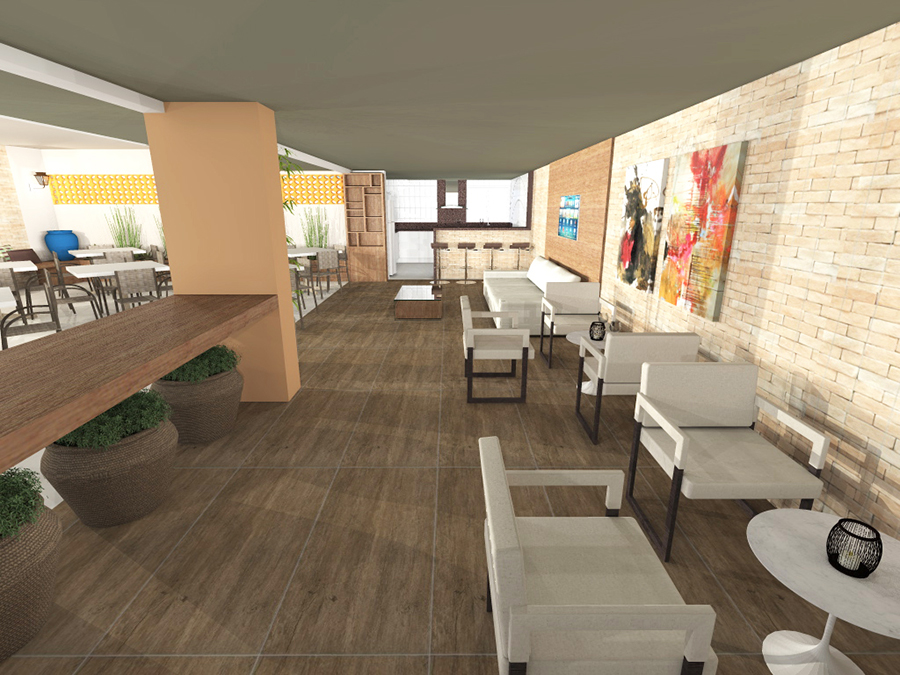O projeto do salão de festas, localizado na área comum de um condomínio residencial, visou amplitude, iluminação e ventilação com materiais que valorizaram o espaço. O resultado foi um salão de festas totalmente repaginado e moderno, aumento da capacidade do salão para até 120 pessoas e divisão dos espaço em diferentes setores: buffet, cozinha americana, lounge e salão com cadeiras.