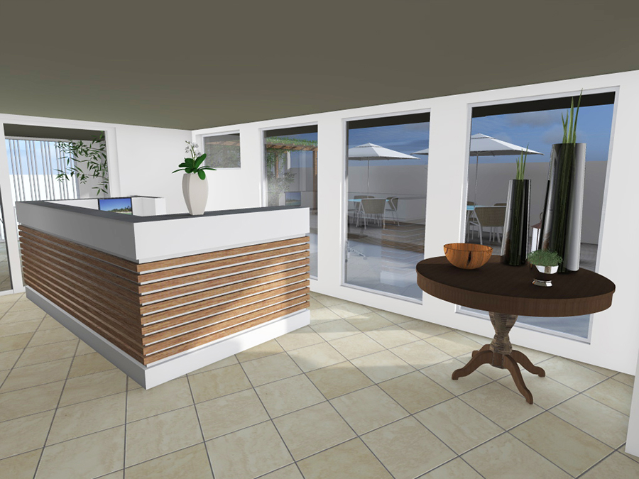 Projeto de Interiores com expansão da área do salão de festas, design de interiores do hall de entrada e circulação do térreo com acompanhamento de obra de todos os ambientes.